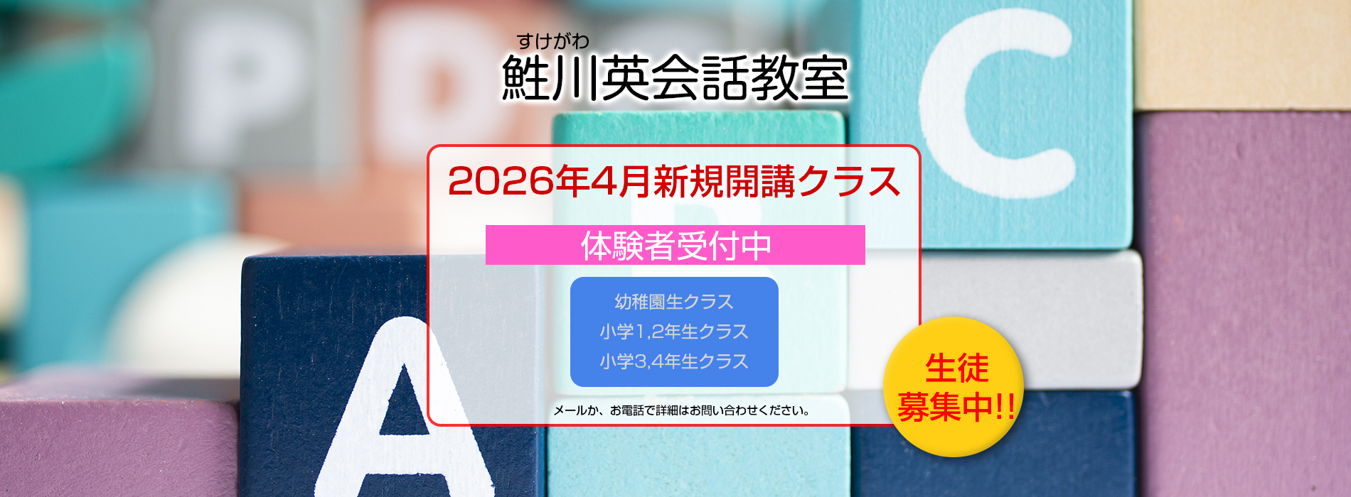 学年によって日程が違いますのでメールか、お電話で詳細はお問い合わせください。